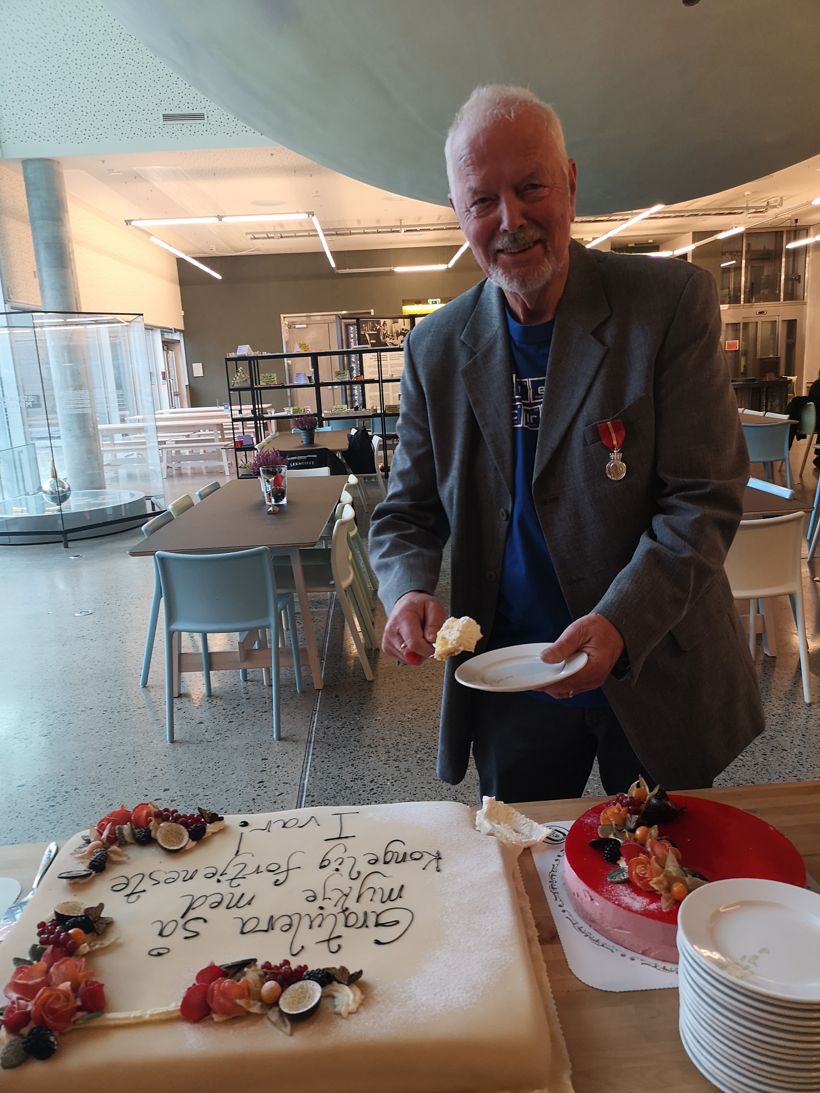 Typisk nok for jubilanten vert feiringa av fortenestemedaljen feira på realfagsturnè for skuleelevar på Karmøy denne veka. Under sjølve utdelinga, trudde han sjølv at han kom for å halda vitenshow for ei som vert pensjonist i Jærmuseet. Eigentleg var det han sjølv som skulle stå i sentrum denne dagen utan at han ana kva som skulle skje. Og det var ingen tvil om at heidersgjesten var overraska og rørt over tildelinga.
