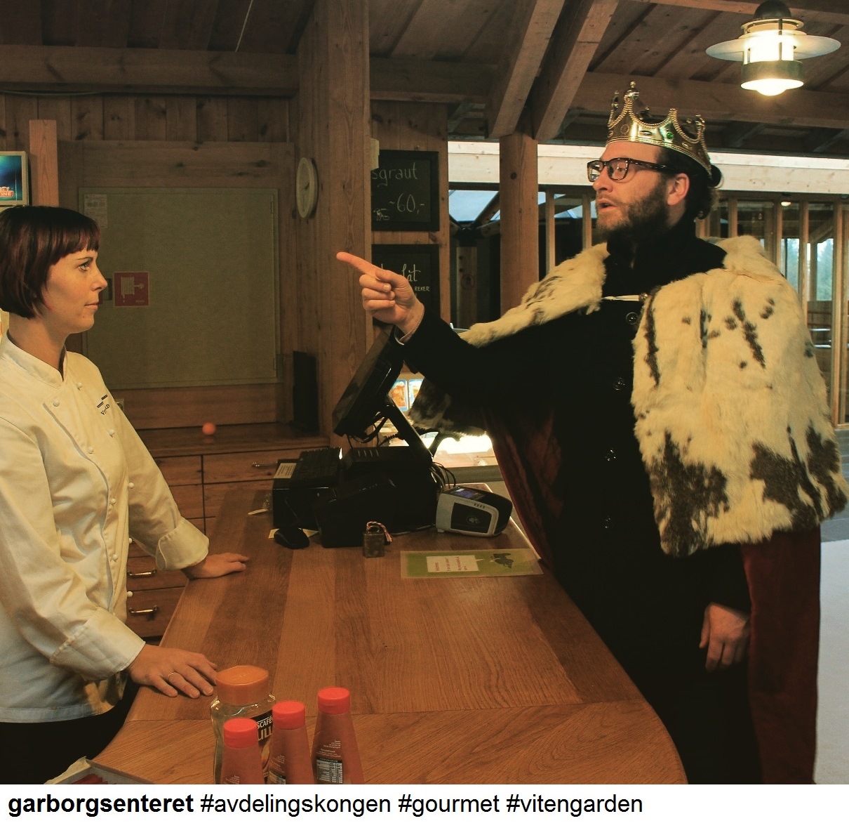 «Då tar me gourmet, Sorry. Det er mat ein konge verdig, også er me jo her på Vitengarden allereie.»
