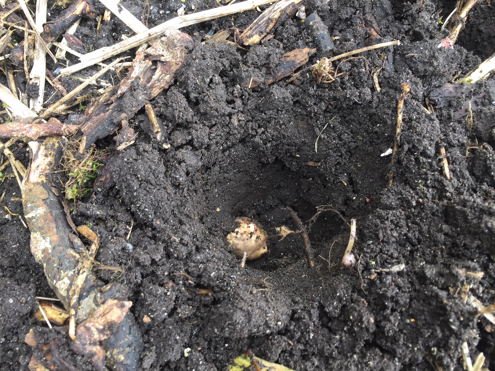 Jordskokken er plantet i bakhagen i det østlige hjørnet ved stein- og tregjerdet. Jorda her er ikke så dyp, men den er god og næringsrik. Akkurat på dette stedet har skvallerkålen i lengre tid vært enerådende. Det sies at jordskokk fint skal kunne konkurrere om plassen med skvallerkål.